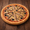 Tomate, fromage, champignons, poivrons, jambon, olives
