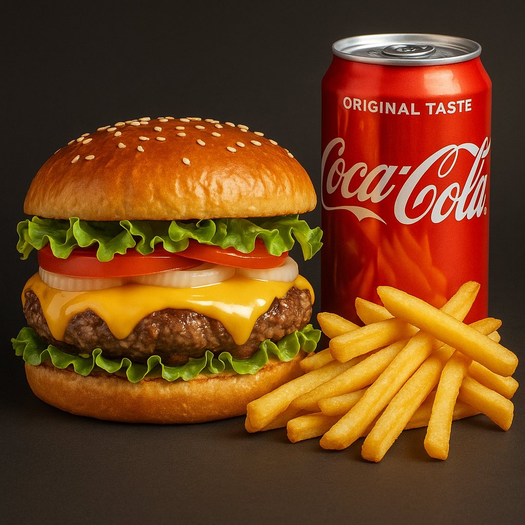2 Steaks, double, fromage + frites + 1 boisson 33cl